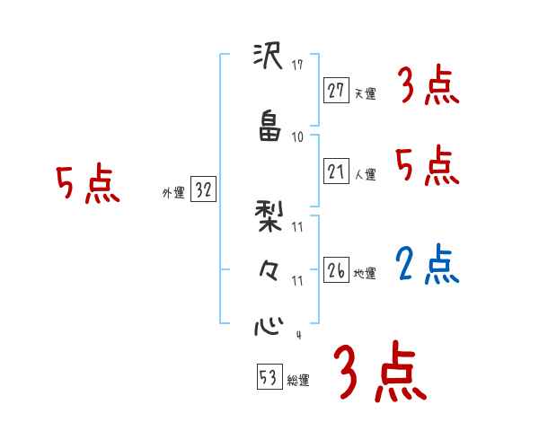沢畠梨々心さんの画数の鑑定結果