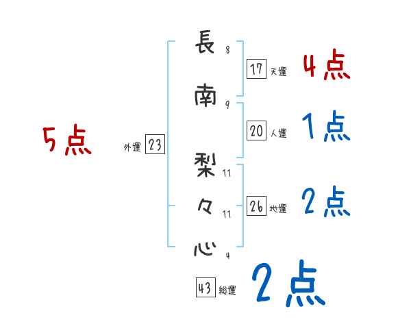 長南梨々心さんの画数の鑑定結果