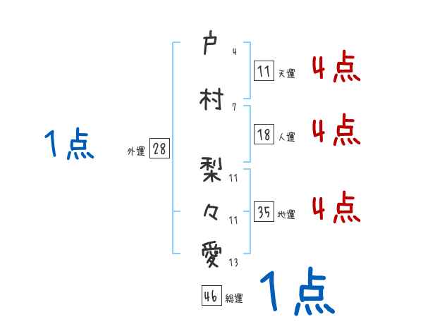 戸村梨々愛さんの画数の鑑定結果