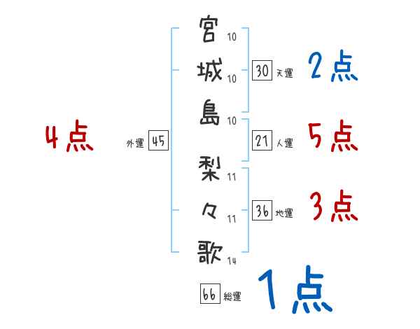 宮城島梨々歌さんの画数の鑑定結果