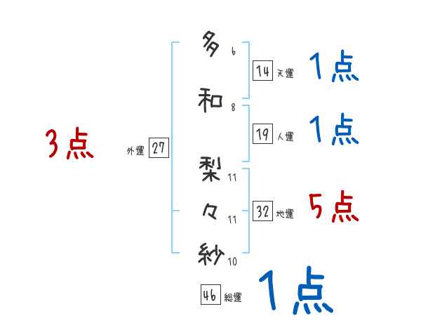 多和梨々紗さんの画数の鑑定結果