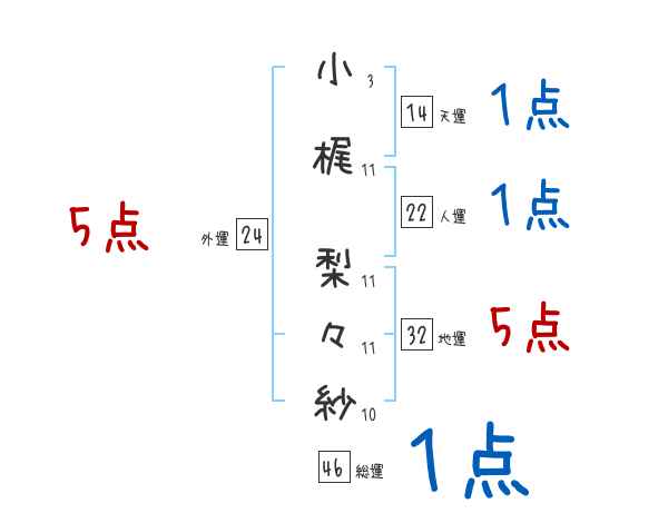 小梶梨々紗さんの画数の鑑定結果