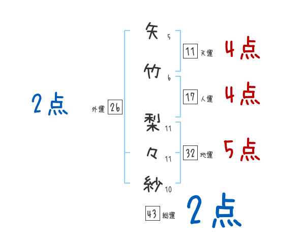 矢竹梨々紗さんの画数の鑑定結果