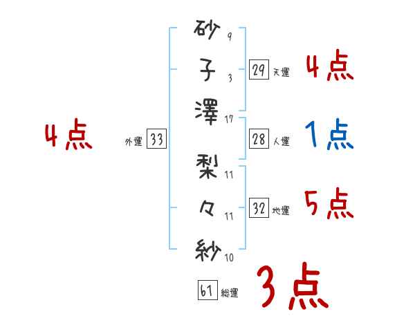 砂子澤梨々紗さんの画数の鑑定結果