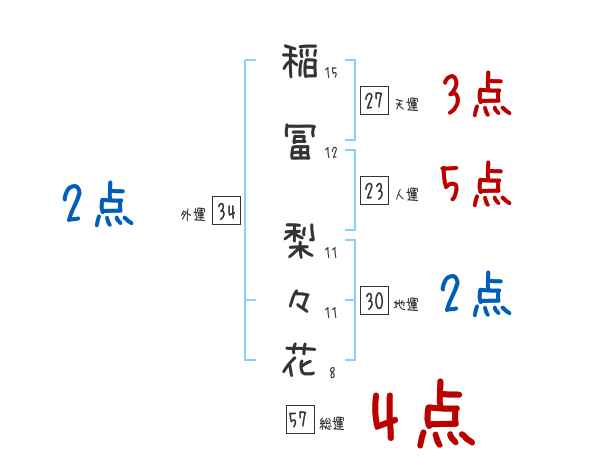 稲冨梨々花さんの画数の鑑定結果