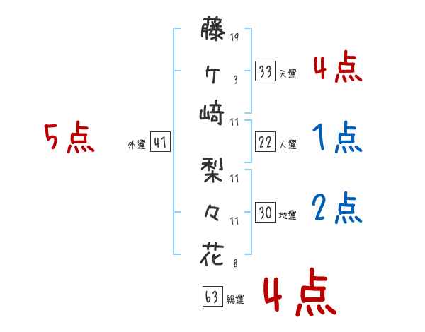 藤ヶ﨑梨々花さんの画数の鑑定結果