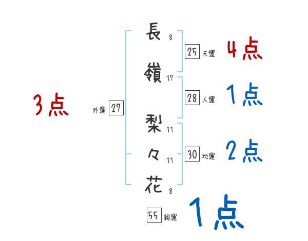 長嶺梨々花さんの画数の鑑定結果