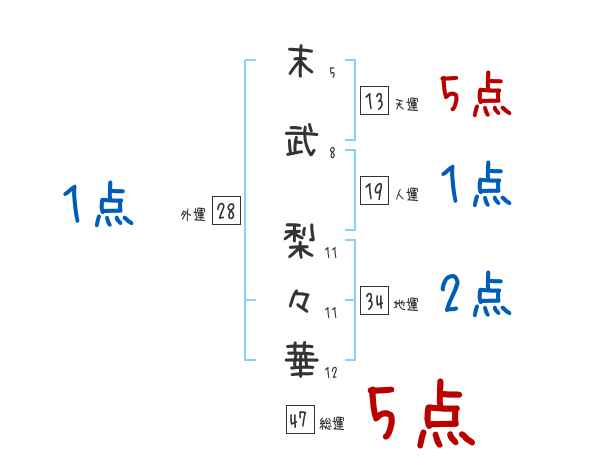 末武梨々華さんの画数の鑑定結果