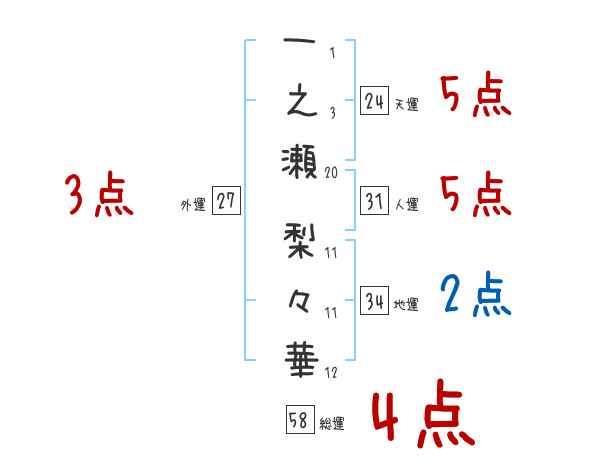 一之瀬梨々華さんの画数の鑑定結果