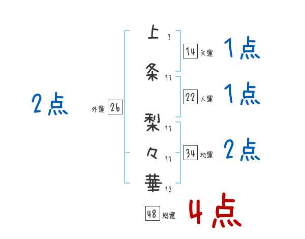 上条梨々華さんの画数の鑑定結果