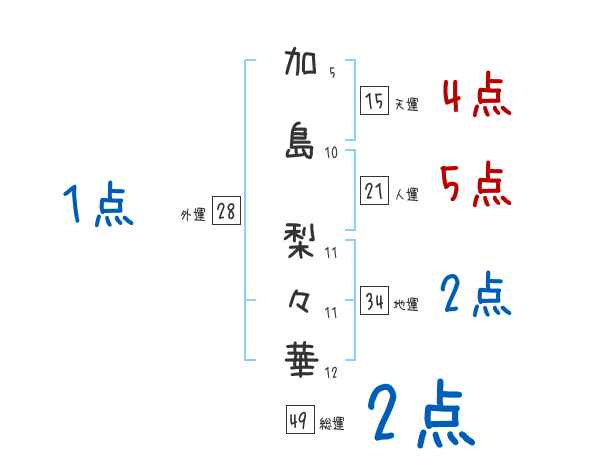 外運![]() | 加島梨々華さんの外運は28画の1つ星!家庭環境に注意。スポーツで活躍できる能力があるかも。 生活面を象徴する運勢です。外部から受ける影響力を表し、結婚運、家庭運や職場、環境への順応性を表します。 |