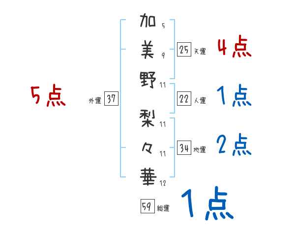 加美野梨々華さんの画数の鑑定結果