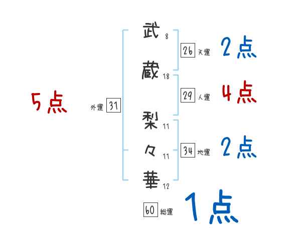 武蔵梨々華さんの画数の鑑定結果
