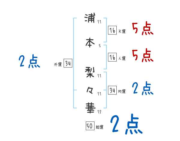 天運![]() | 浦本梨々華さんの天運は16画の5つ星!人望が厚く大きく発展する。逆転成功が見える。 家系が持つ宿命的な運勢を表します。祖先から受け継いだ苗字ですので自分の力が及びません。家柄を象徴します。 |