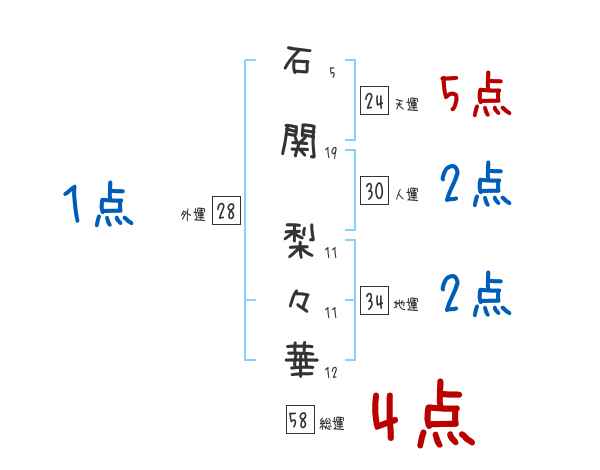 石関梨々華さんの画数の鑑定結果