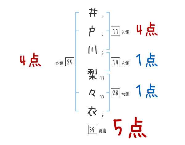 井戸川梨々衣さんの画数の鑑定結果