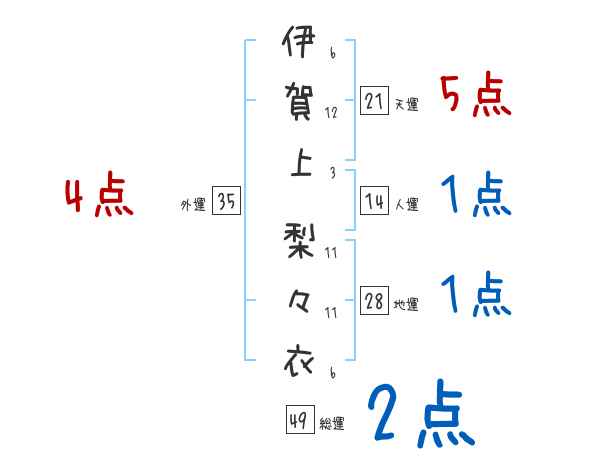 天運![]() | 伊賀上梨々衣さんの天運は21画の5つ星!統率力がある。独立し成功する。名誉を手に入れる。 家系が持つ宿命的な運勢を表します。祖先から受け継いだ苗字ですので自分の力が及びません。家柄を象徴します。 |