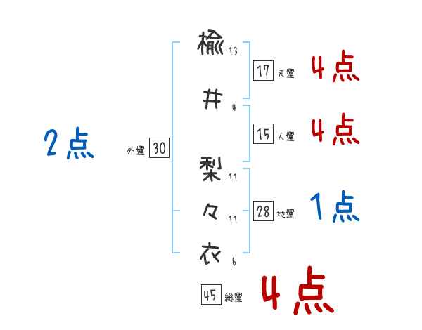 楡井梨々衣さんの画数の鑑定結果