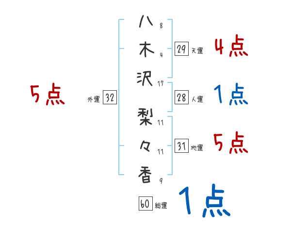 八木沢梨々香さんの画数の鑑定結果