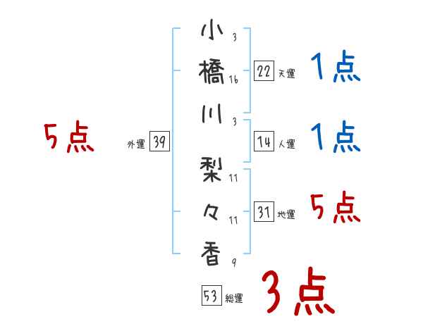 小橋川梨々香さんの画数の鑑定結果