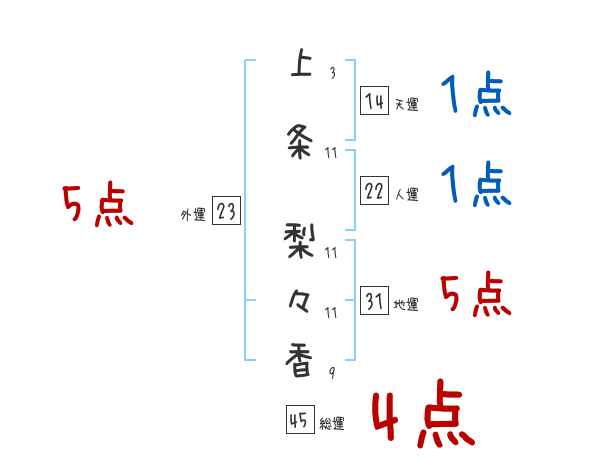 上条梨々香さんの画数の鑑定結果