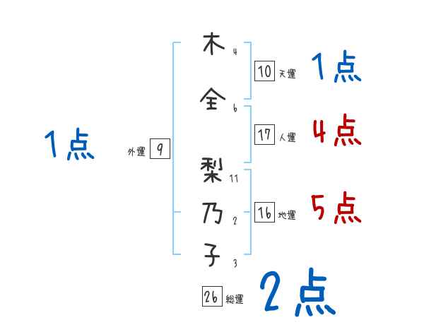 外運![]() | 木全梨乃子さんの外運は9画の1つ星!消極的で才能を発揮することが苦手なことも。周りの意見に耳を傾けましょう。 生活面を象徴する運勢です。外部から受ける影響力を表し、結婚運、家庭運や職場、環境への順応性を表します。 |
