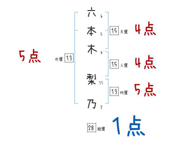 六本木梨乃さんの画数の鑑定結果
