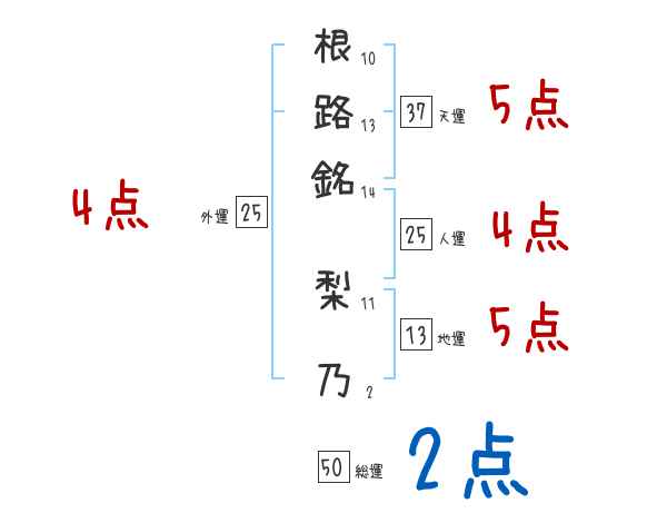 地運![]() | 根路銘梨乃さんの地運は13画の5つ星!才能に恵まれ人気がある。名声を手に入れる。円満な人生。 個性を表す基礎的な運勢です。性格形成や対人関係、行動力など家庭環境に影響されます。主に誕生してから20歳くらいまでの若年期の運勢を表します。 |