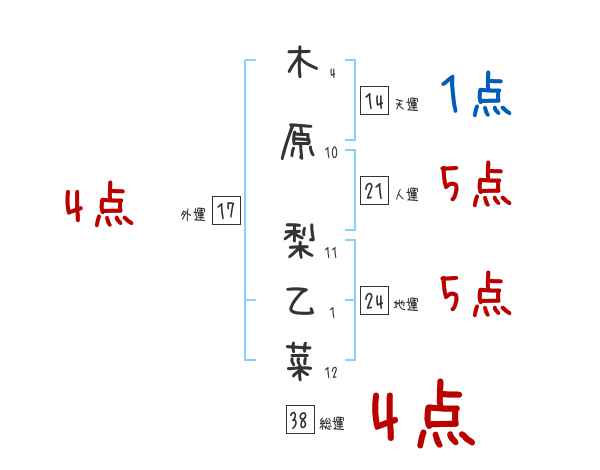 木原梨乙菜さんの画数の鑑定結果