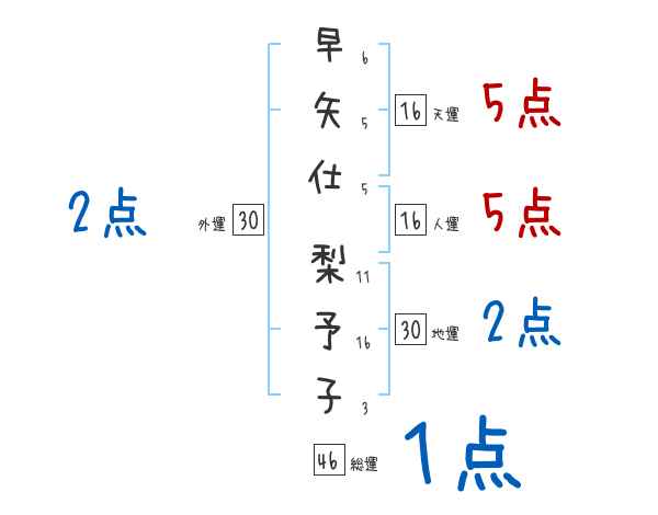 早矢仕梨予子さんの画数の鑑定結果