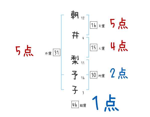 朝井梨予子さんの画数の鑑定結果