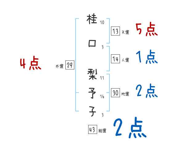 桂口梨予子さんの画数の鑑定結果