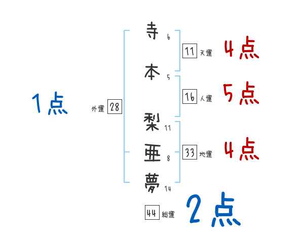 寺本梨亜夢さんの画数の鑑定結果