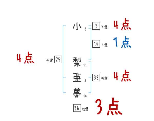 小梨亜夢さんの画数の鑑定結果