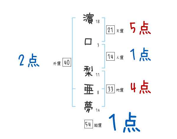 天運![]() | 濵口梨亜夢さんの天運は21画の5つ星!統率力がある。独立し成功する。名誉を手に入れる。 家系が持つ宿命的な運勢を表します。祖先から受け継いだ苗字ですので自分の力が及びません。家柄を象徴します。 |