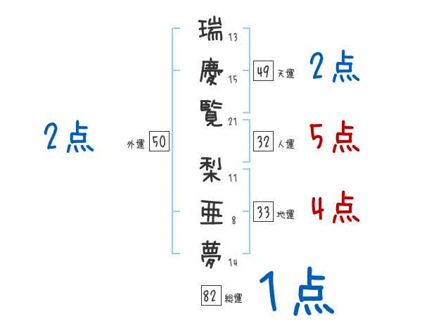 瑞慶覧梨亜夢さんの画数の鑑定結果