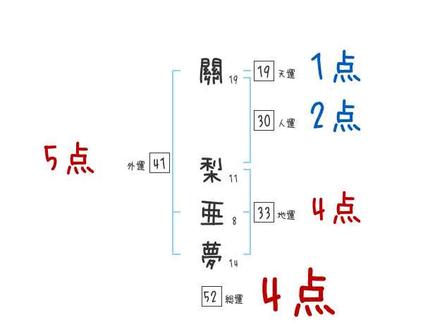 關梨亜夢さんの画数の鑑定結果