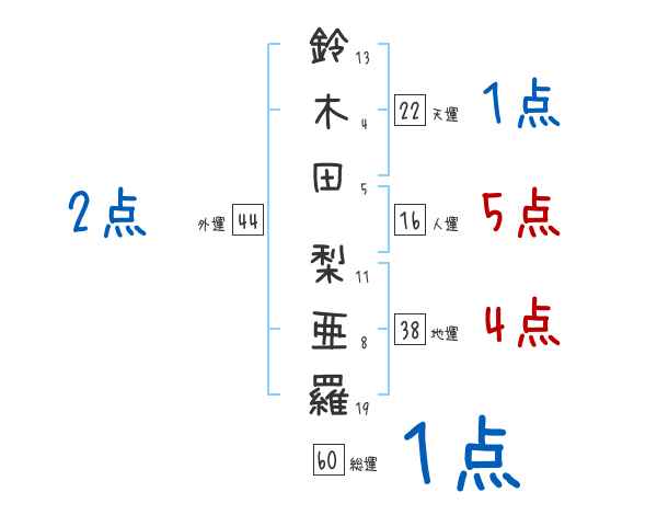 鈴木田梨亜羅さんの画数の鑑定結果
