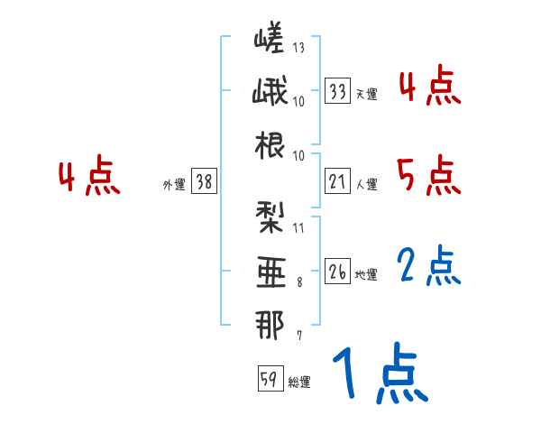 嵯峨根梨亜那さんの画数の鑑定結果
