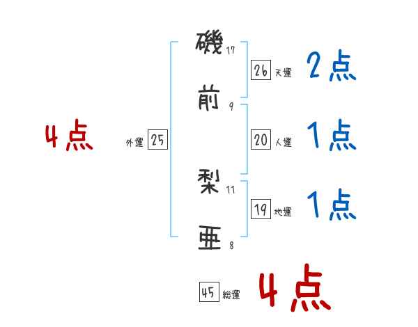 磯前梨亜さんの画数の鑑定結果