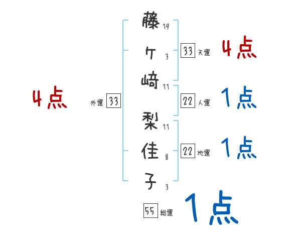 藤ヶ﨑梨佳子さんの画数の鑑定結果