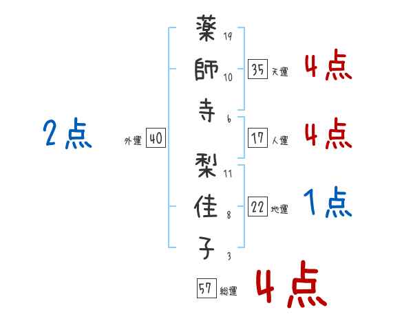 薬師寺梨佳子さんの画数の鑑定結果