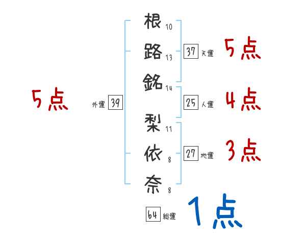 根路銘梨依奈さんの画数の鑑定結果