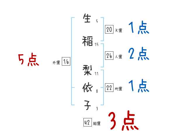 外運![]() | 生稲梨依子さんの外運は16画の5つ星!人望が厚く大きく発展する。逆転成功が見える。 生活面を象徴する運勢です。外部から受ける影響力を表し、結婚運、家庭運や職場、環境への順応性を表します。 |