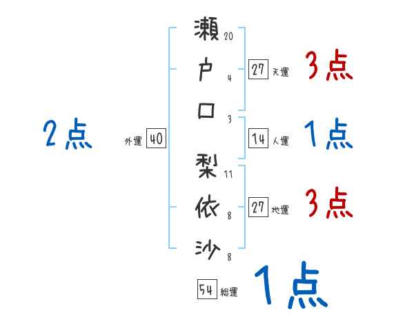 瀬戸口梨依沙さんの画数の鑑定結果