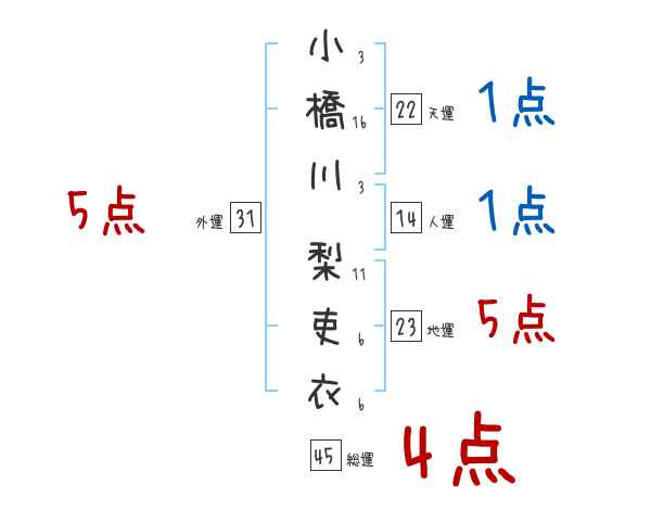 小橋川梨吏衣さんの画数の鑑定結果