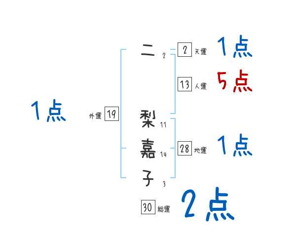 二梨嘉子さんの画数の鑑定結果