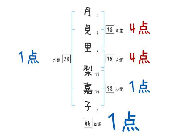月見里梨嘉子さんの画数の鑑定結果
