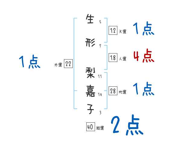 生形梨嘉子さんの画数の鑑定結果