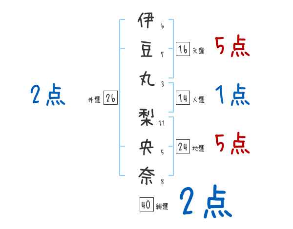 伊豆丸梨央奈さんの画数の鑑定結果